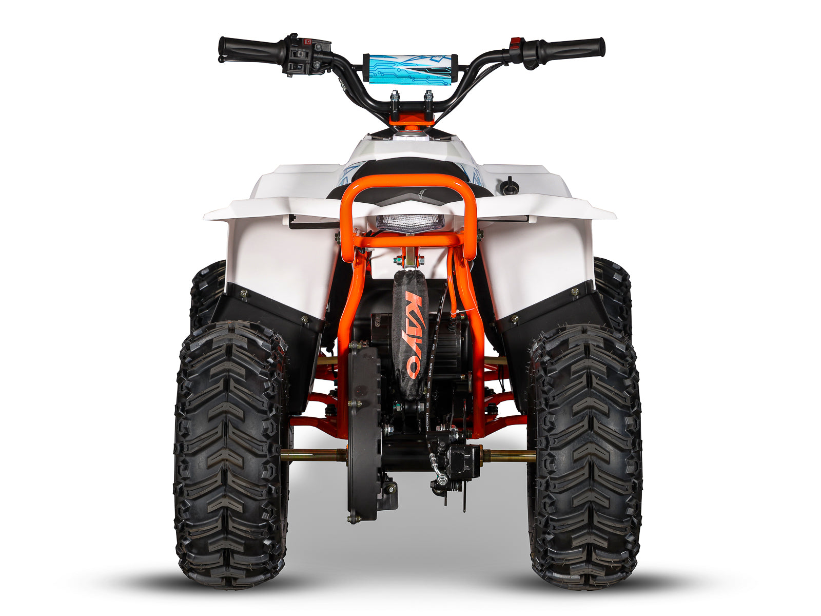 Meet the Kayo e‑Bull, the next generation electric kids quad – packing the same durable Kayo chassis but electrified with a powerful 1000 W brushless motor, automatic gearing, and built-in reverse. With soft-start, variable drive modes, and whisper-quiet ride, it’s engineered to thrill young riders while giving parents peace of mind.
