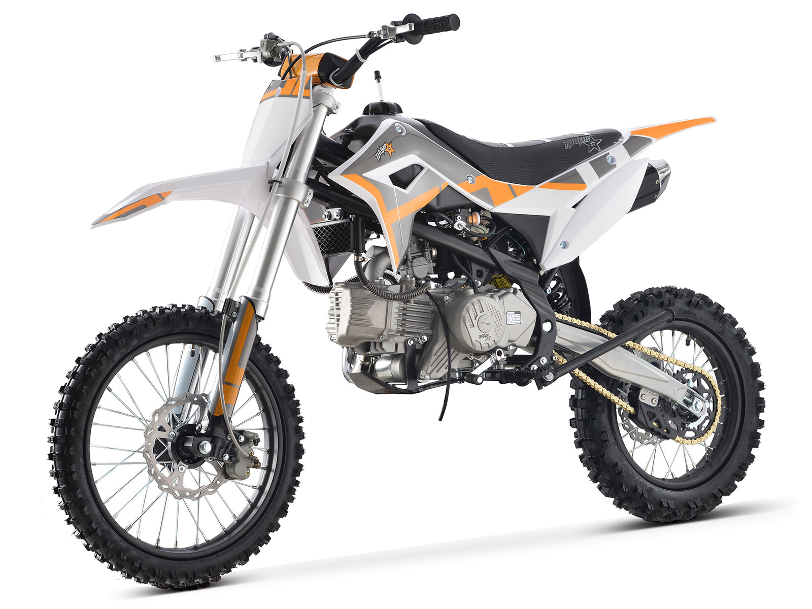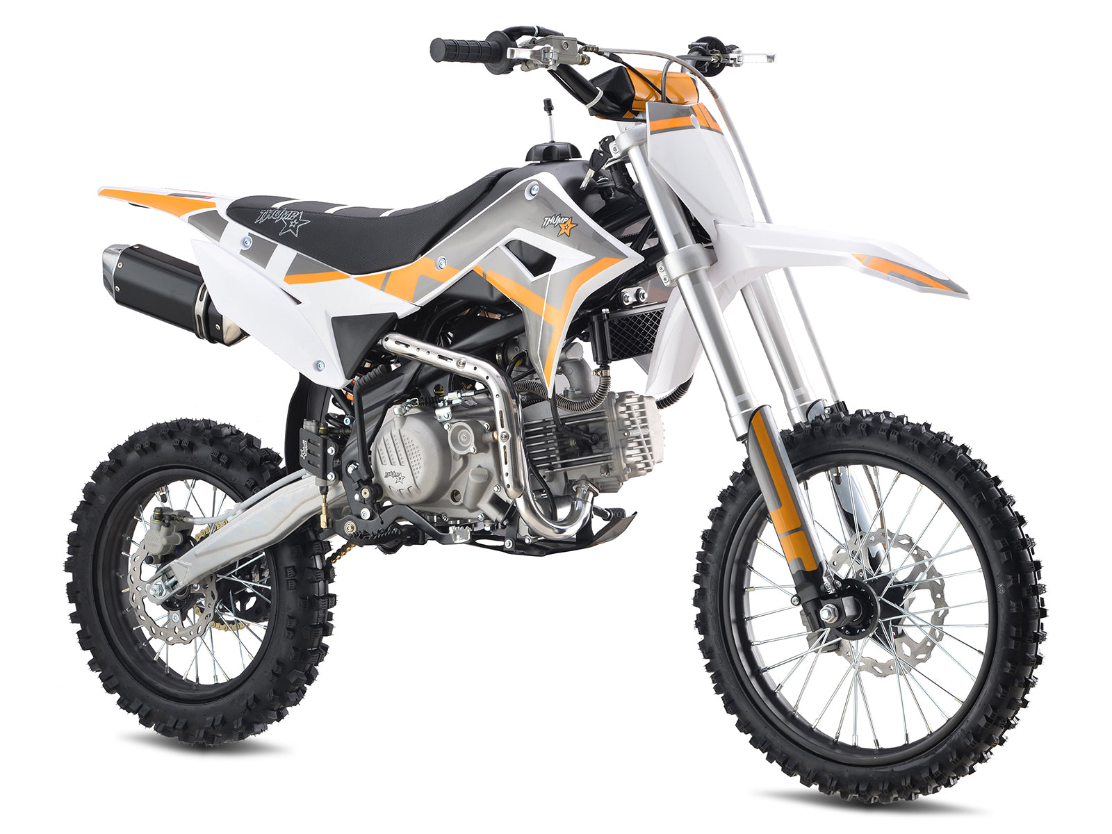 Built on a CRF110 chassis, the Thumpstar 190 offers the perfect blend of stiffness and manoeuvrability. MX-style 17β front and 14β rear wheels give you traction and stability whether youβre carving corners or hammering down straights.